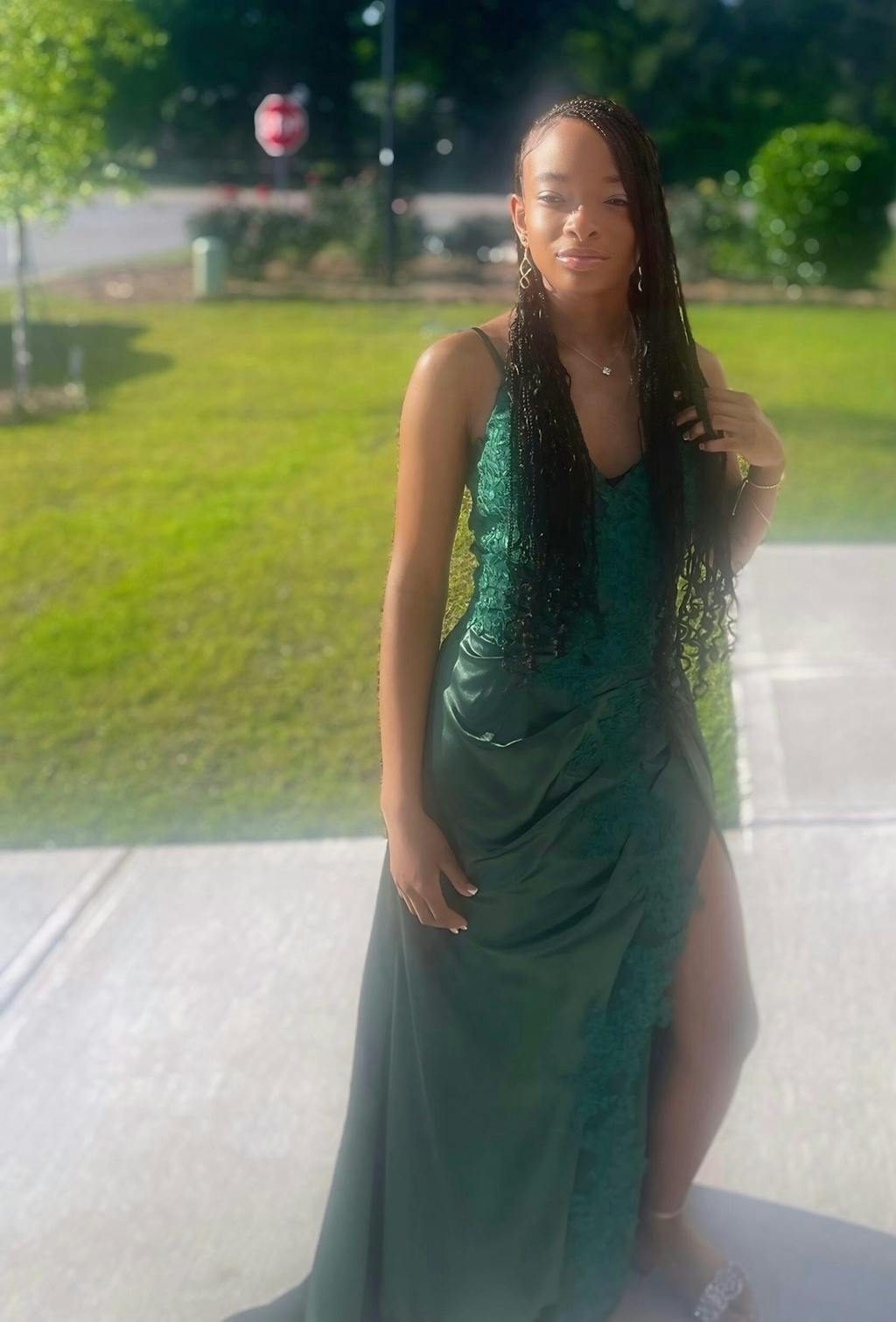 The dress is beautiful and size 2 fit my 17 year old daughter (5’7, 125 lbs) perfectly like a custom made gown