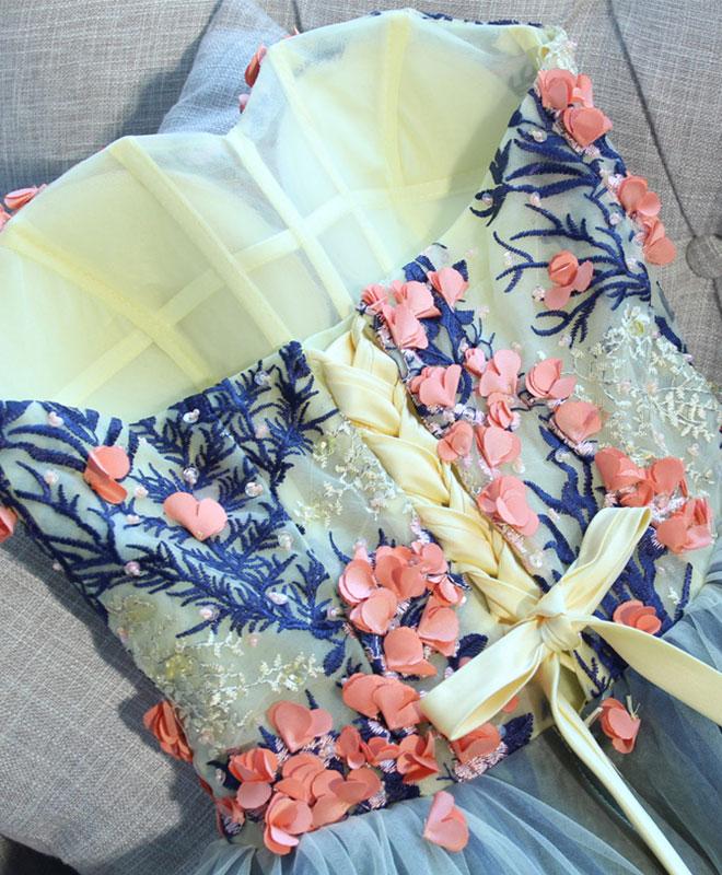 Charming Short Party Dress , Tulle Formal Dress with Flower Lace Applique