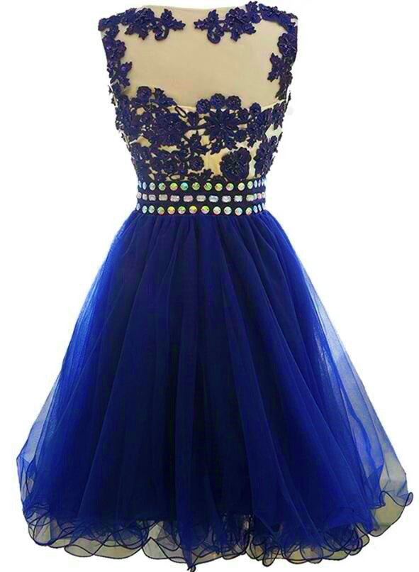 Cute Blue Knee Length Round Neckline Beade Party Dress, Blue Homecoming Dress