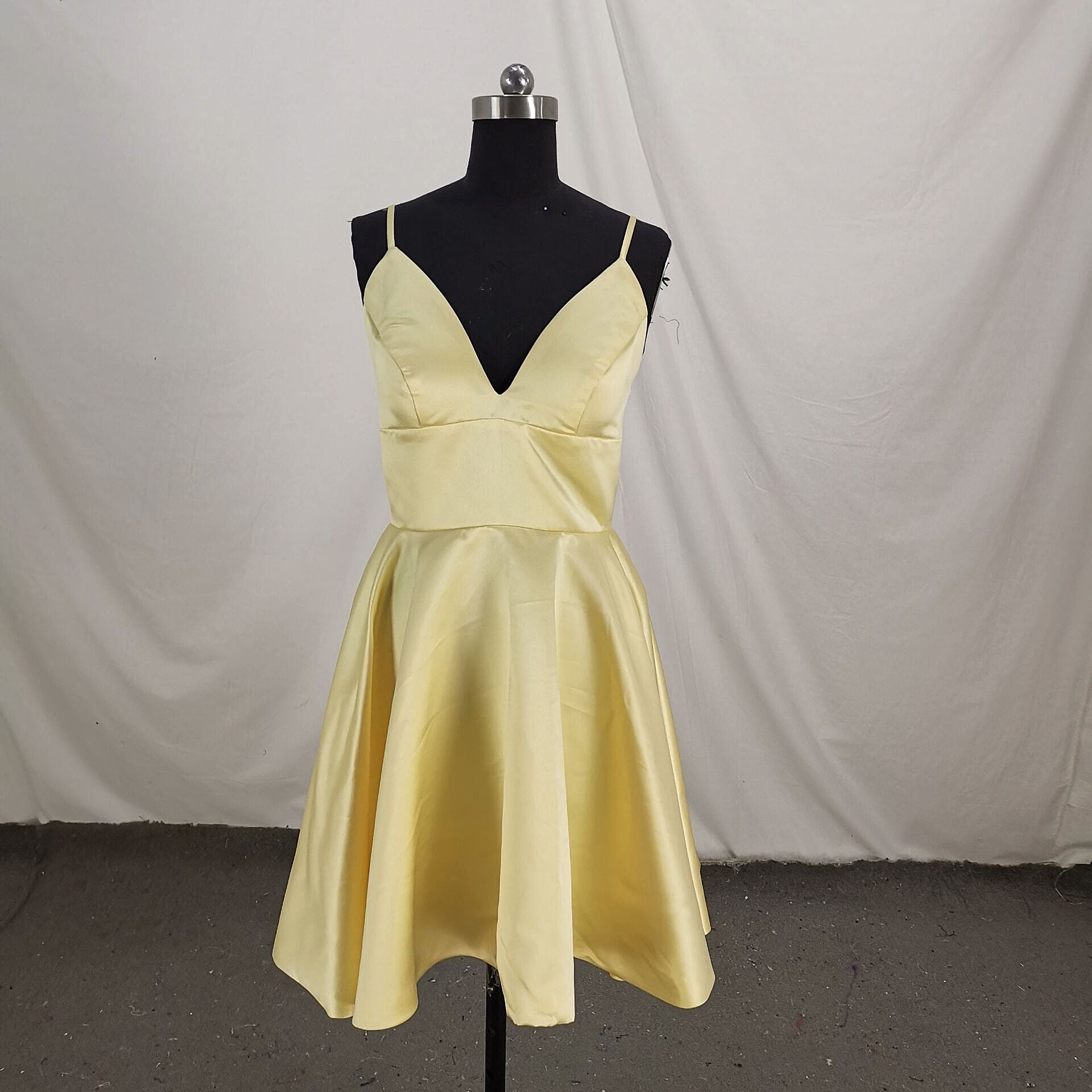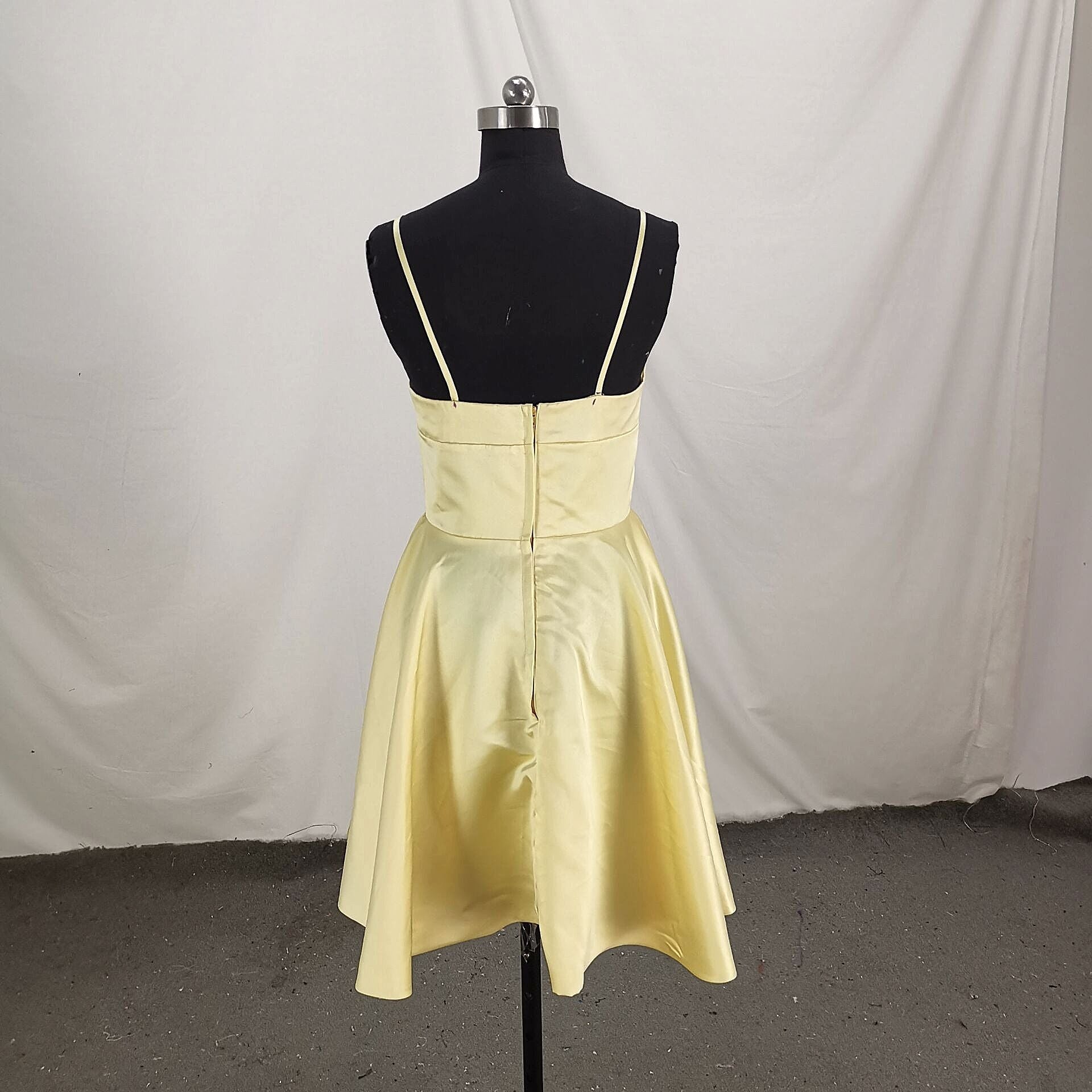 Cute Satin Straps Knee Length Party Dress, Light Yellow Homecoming Dress