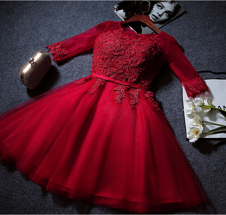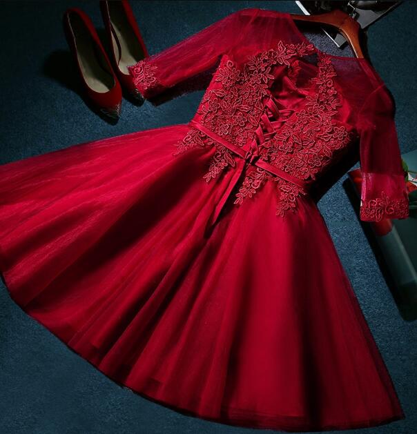 Lovely 1/2 Sleeves Knee Length Tulle Party Dress, Short Homecoming Dress