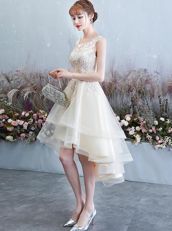 Lovely Round Neckline High Low Party Dress, Tulle Formal Dress