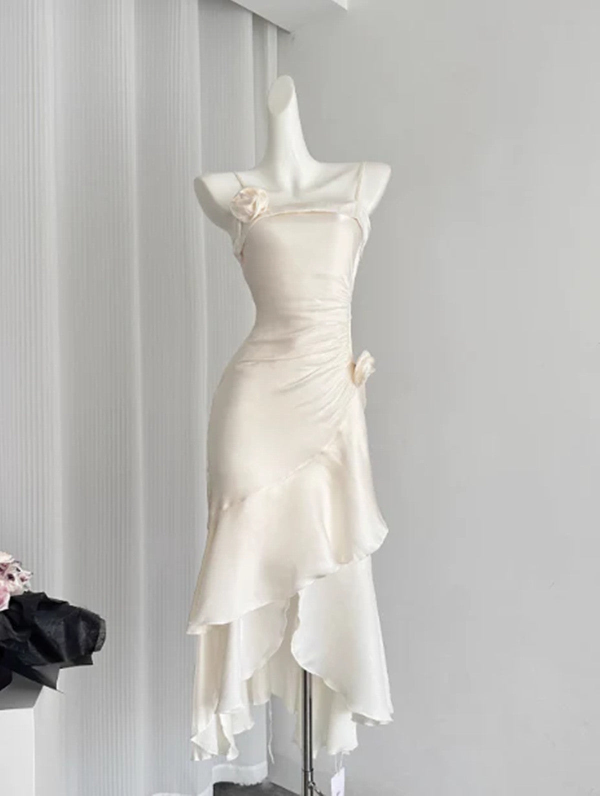 Lovely Satin High Low Straps Mermaid Homecoming Dress, Satin Prom Dress Formal Dress