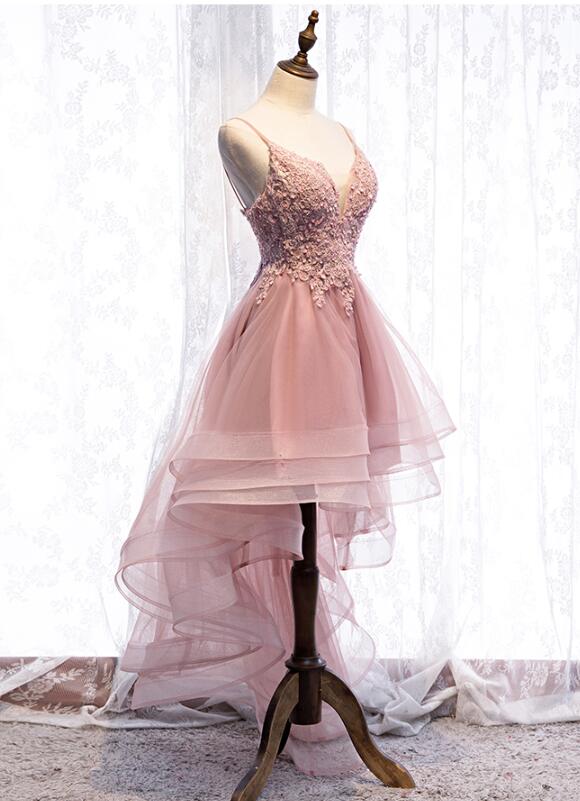 Straps Pink Homecoming Dress High Low Party Dress, Homecoming Dress